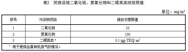 4.2.2廢氣焚燒設施應對排放煙氣中的二氧化硫、氮氧化物和二噁英類進行監測,并達到表2規定的要求。其他大氣污染物排放還應滿足表1的控制要求。
