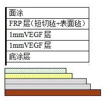作為一個重防腐蝕性質的工程而言,材料的本身特性是一個基礎保障,但是如何運用高性能的襯里材料包括設計方案更是一個高要求的技術性工作,在玻璃鱗片襯里工程中,也發現了即使采用進口的材料,但最后工程防腐蝕失效或者是役期縮短的情況也時有發生,在排除施工因素外,工程設計方案的不足也是一個主要原因。在FGD裝置中,最容易出現技術問題的吸收塔,筆者比較了許多公司的設計方案,發現各有差異,但一些公司提供的技術方案更多地是從成本方面考慮的,差異主要集中于對于鱗片耐磨結構層的差異,國內一些公司在耐磨處理上,會采用簡單的玻璃鋼復合鱗片結構(圖3-1),就是在1-2mm的鱗片結構上再加襯1-2mm的玻璃鋼結構,相當于FUCHEM-3或者是FUCHEM-6結構,而我們建議是以下結構(圖3-2)。