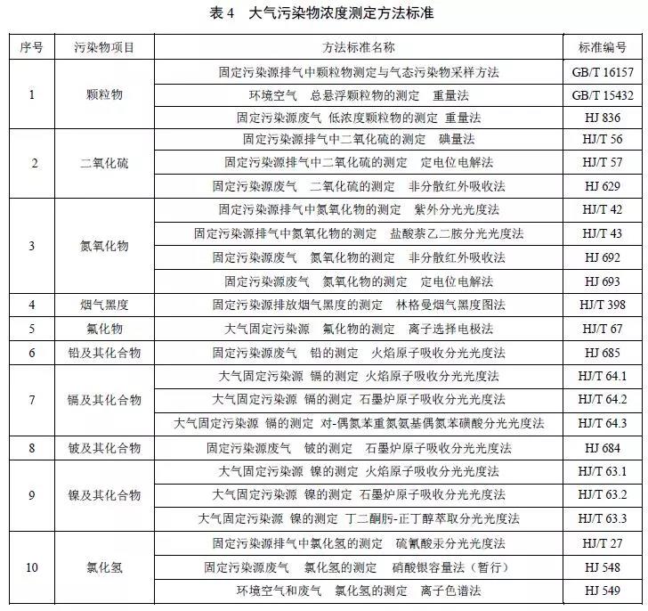 5.1.7 對大氣污染物排放濃度的測定采用表4所列的方法標準。