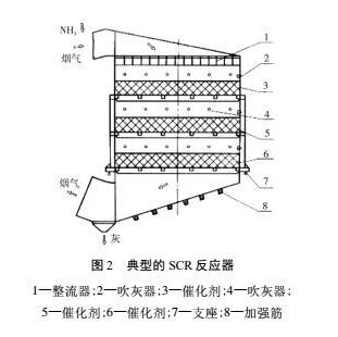 典型的“半干法脫硫+SCR”工藝流程如圖1所示,其主要設備SCR反應器如圖2所示。可見,原煙氣通過GGH換熱器與脫硝后的凈煙氣換熱并升溫至250℃,再與加熱爐燃燒產生的高溫煙氣混合升溫至280℃,然后與NH3在混合器的擾動下得以充分混合,混合后的煙氣進入SCR反應器。