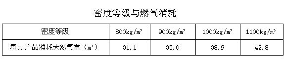 此時(shí),每立方米800kg密度等級(jí)的產(chǎn)品,天然氣消耗量約31.1m3。而每立方米1100kg密度等級(jí)的產(chǎn)品,天然氣消耗量約42.8m3。每立方米密度相差300kg,燃?xì)庀南嗖?1.7m³。
